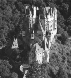 Der Inbegriff einer deutschen Ritterburg steht in einem steilen Seitental der Mosel zwischen Cochem und Koblenz. Acht bis zu 45 Meter hohe Wohntürme drängen sich auf einem ovalen Burgfelsen hoch über dem Bächlein Elz um einen Innenhof: Seit 30 Generationen ist die verschachtelte Bilderbuchburg im Familienbesitz der Grafen von Eltz.